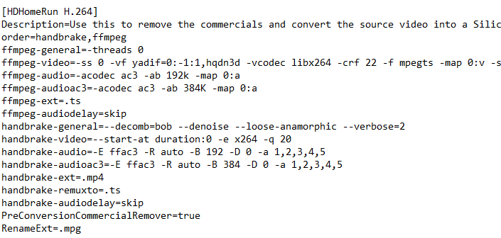 我一直用的是「HDHomeRun H.264」設定檔,它預設會叫 HandBrake 來轉檔。如果你用別的設定檔,應該也能比照辦理。(改之前先把 MCEBuddy 關掉)