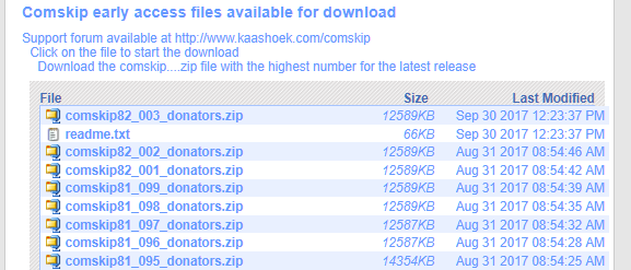 在網站上查看 Comskip Early Access 部分,了解如何取得他們最新的捐贈者版本。