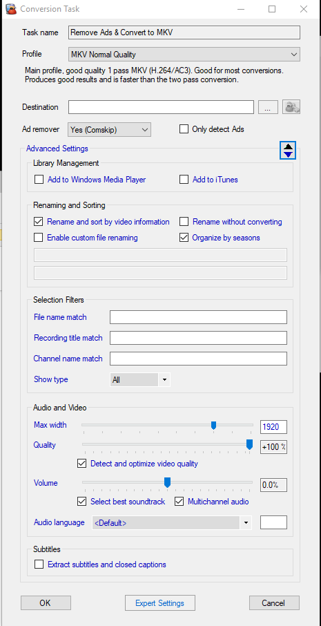 Mon objectif était que MCE Buddy supprime les publicités de tous les nouveaux enregistrements de Plex, puis les encode en MKV H.264 et remplace le fichier original. Ce serait incroyable si cela fonctionnait !
