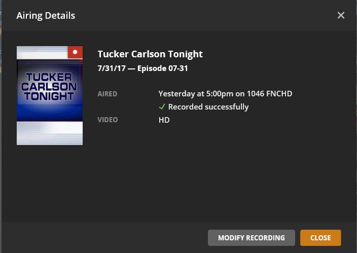 INFORMATION > 2017-07-31T16:24:38 MCEBuddy.Engine.ConversionJob → Moving converted file E:\MCEBuddy Temp\working0\Special Report With Bret Baier-2017-07-31 1607.mkv to \\HOME-SERVER\Recorded TV\Plex DVR\Special Report With Bret Baier (2009)\Season 2017\Special Report With Bret Baier\Special Report With Bret Baier-2017-07-31 1607.mkv