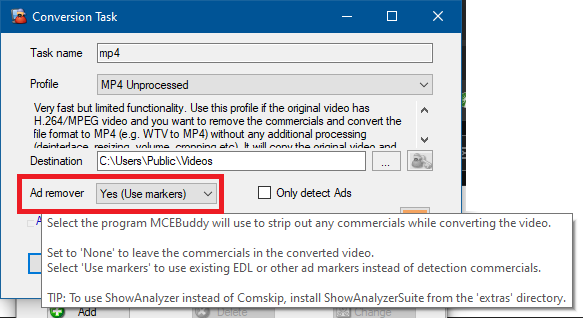 如果找到 EDL 檔案,就不會執行 Comskip(如果你選擇 Comskip 作為廣告偵測方式),也不會使用上述的 Markers 選項;只有在有 EDL 檔案時才會使用它,若沒有 EDL 檔案則什麼都不做。
