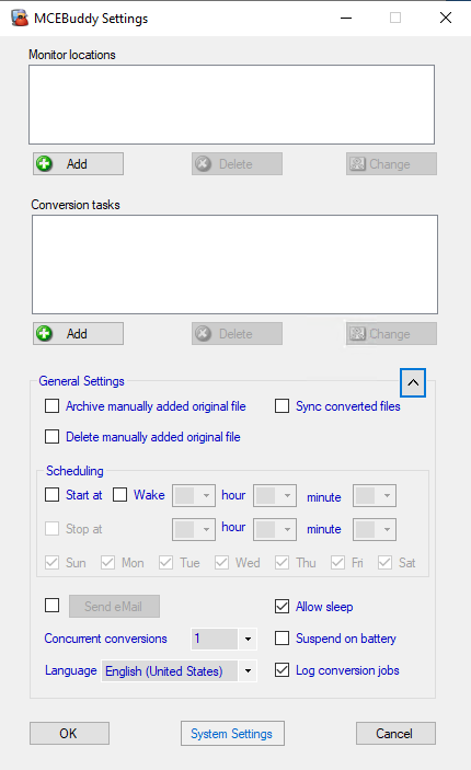 Hvis den løb tør for plads, kan indstillingsfilerne være blevet beskadiget eller ufuldstændige, da de blev skrevet tilbage til disken. Der er ingen måde at gendanne dem på. Selvom der findes en tilsidesættelsesmulighed i MCEBuddy til at ignorere ledig diskplads, er dette en af grundene til, at det er farligt at aktivere den.