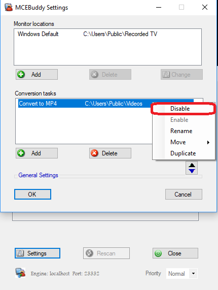 Así el usuario puede tener múltiples tareas de conversión ya preconfiguradas y listas para usar, y poder seleccionar/deseleccionar cuáles estarán activas.