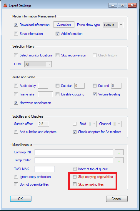 Either Skip copying original files or Skip remuxing files