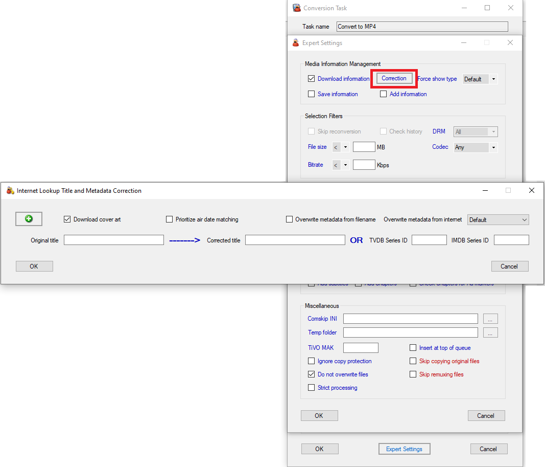 Twee vragen over metadata. Ik sta meestal toe dat mcebuddy deze download, aangezien mijn videobestanden gewone ts-bestanden zijn. Ik gebruik je meegeleverde naamgevingsconventies en krijg meestal metadata, maar mijn probleem is dat ik soms niet-Engelse metadata krijg en ik vraag me af of er een manier is om dit te forceren Engels te gebruiken?