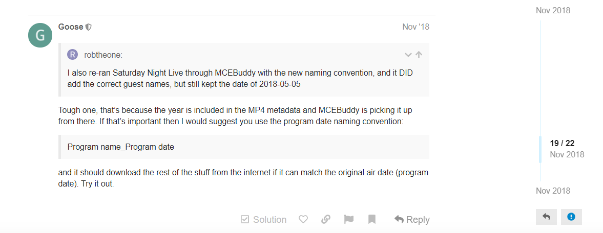 2019-10-30T15:32:23 MCEBuddy.MetaData.VideoMetaData → Extracted Original Broadcast Date and Time from Filename → 10/20/2019 6:30:00 PM