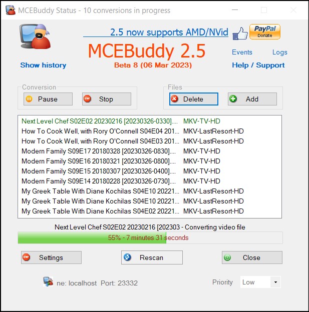 2)当显卡被用于其他任务(游戏和 Plex,Plex 可能会为客户端播放器启动自己的转码)时,我会停止 MCEBuddy,因为这是一台多功能 PC,同时也是我的录制引擎。