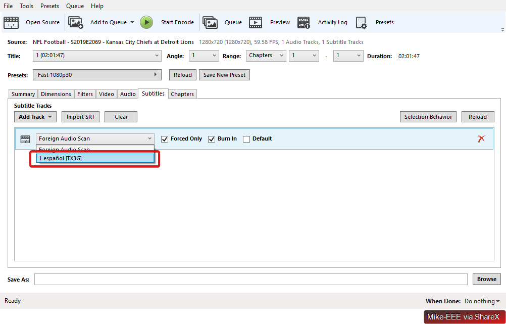 Handbrake 用來燒錄字幕(而非嵌入)。