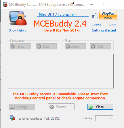 Je reçois maintenant « Le service MCEBuddy n’est pas disponible. Veuillez le démarrer depuis le panneau de configuration Windows ou vérifier la connexion au moteur. » immédiatement après le redémarrage de mon ordinateur.