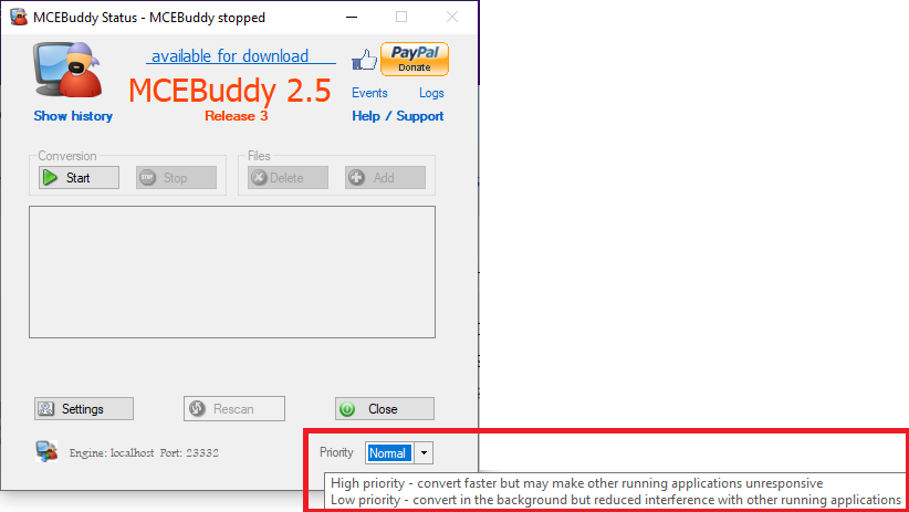 Ma nouvelle carte graphique peut exécuter 4 sessions d’encodage simultanées. Je l’ai vérifié avec FFmpeg Batch AV Converter plus tôt. J’exécute la même chose dans MCEBuddy en ce moment et mon utilisation CPU est à 100 % en utilisant ffmpeg comme encodeur et l’interface graphique de MCEBuddy est non réactive et ma machine est lente. Je veux continuer à utiliser MCEBuddy mais je ne peux pas avoir ma machine paralysée pour ce faire. J’ai dû fermer l’interface graphique pour faire quoi que ce soit avec ma machine. J’ai ensuite rouvert l’interface graphique et elle a affiché la progression des quatre conversions pendant environ 5 secondes avant de se bloquer et de redevenir non réactive. Le programme n’est pas utilisable de cette façon. Est-ce que je fais quelque chose de mal et comment puis-je corriger cela ?