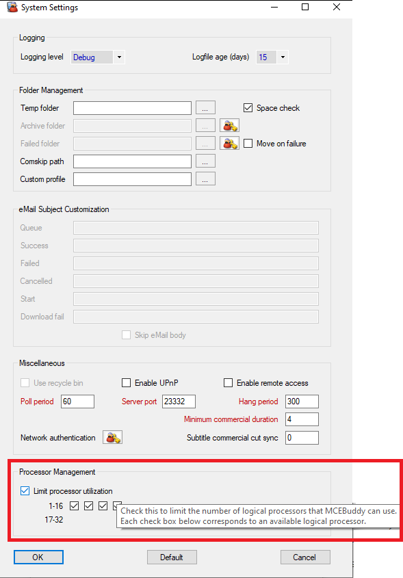 Je suis donc redescendu à 2 conversions simultanées et cela me permet de rester sous les 90 % avec les autres tâches que j’ai en cours, donc au moins mon ordinateur reste utilisable. J’adore MCEBuddy, mais j’aimerais savoir comment faire baisser l’utilisation CPU pour 4 conversions simultanées et ainsi gagner en vitesse. J’utilisais un profil personnalisé dans l’autre programme et je pouvais en faire 4 en une heure sans problème, avec une utilisation CPU d’environ 65 %.