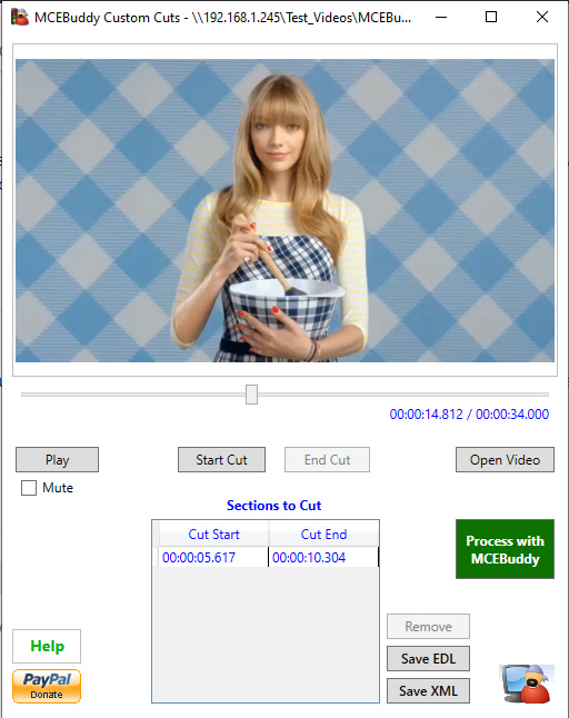 Haben Sie versucht, die in MCEBuddy enthaltenen Custom Cuts zu verwenden? Vermutlich wäre das eine einfachere Möglichkeit, die Schnitte zu markieren und sie zur Bearbeitung an MCEBuddy zu senden.