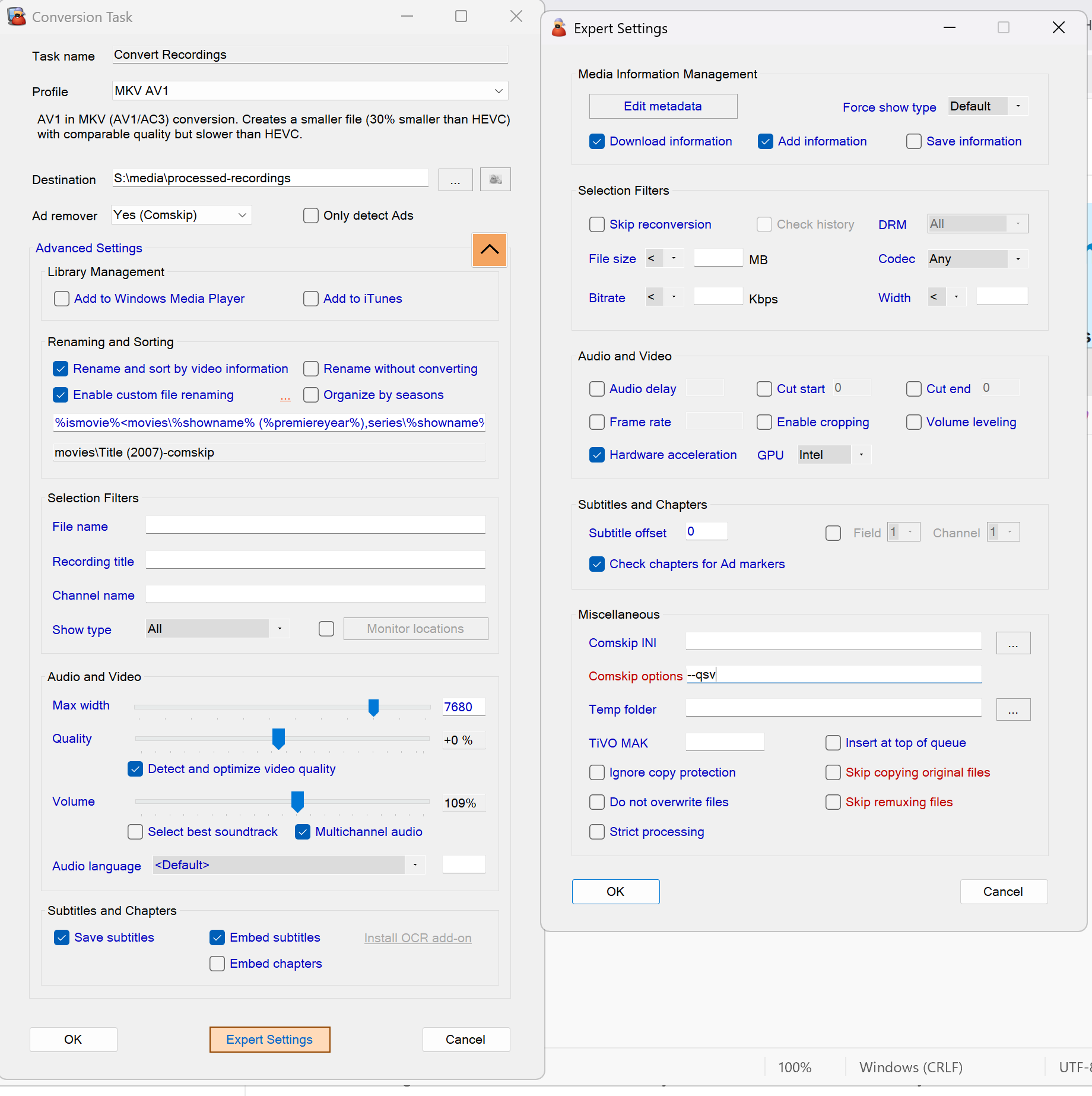 Brugerdefinerede Comskip CLI-parametre -> --qsv