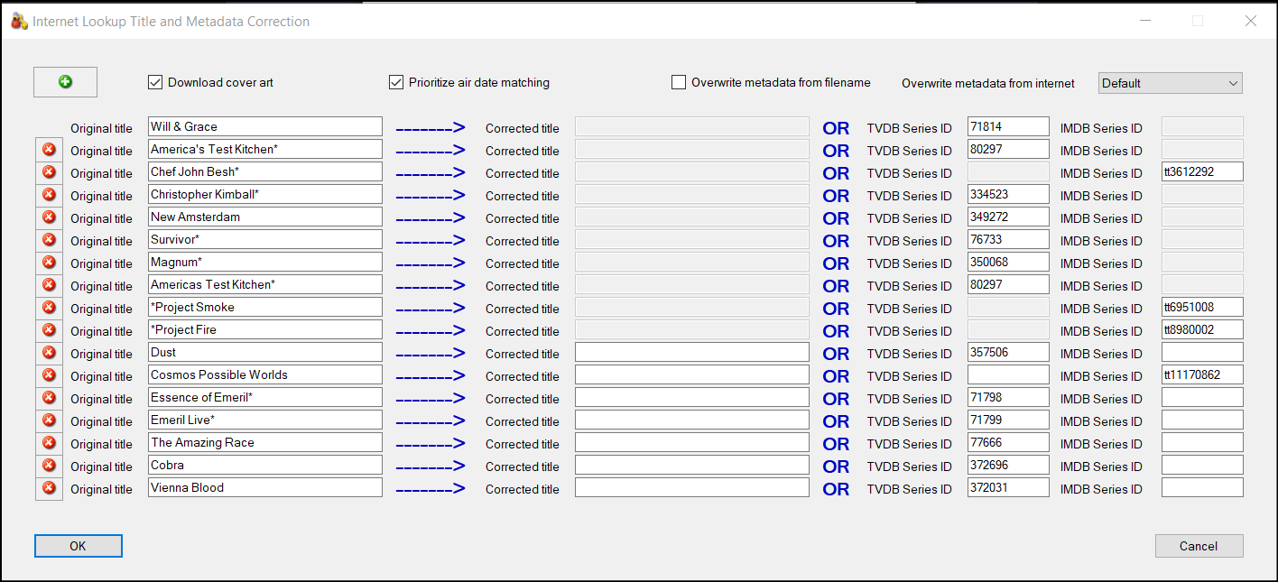 En op een willekeurige website of zelfs een afleveringsgids is er geen manier om die informatie in een bruikbaar formaat of via een API te verkrijgen. Het is letterlijk extraheren van een webpagina, als het al beschikbaar is. Dus de vermeldingen moeten bijna altijd als correctie in MCE Buddy worden gecodeerd en als er metadata is, is het bijna altijd alleen wat in de gidsgegevens zat die HDHR DVR heeft toegevoegd toen het programma OTA werd opgenomen. Elke YT-, web- of andere bron van de afleveringen is vrijwel kansloos.